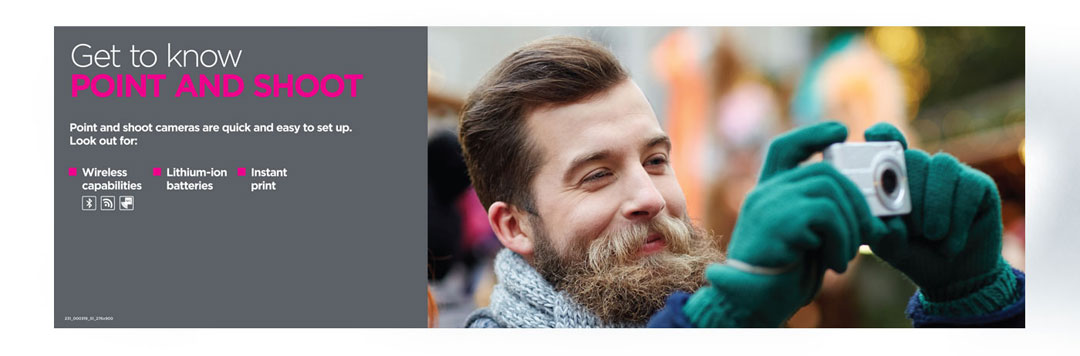 Design and artwork for print for all photography and camera range. This included design of banners, posters and all internal marketing for all Dixons stores.